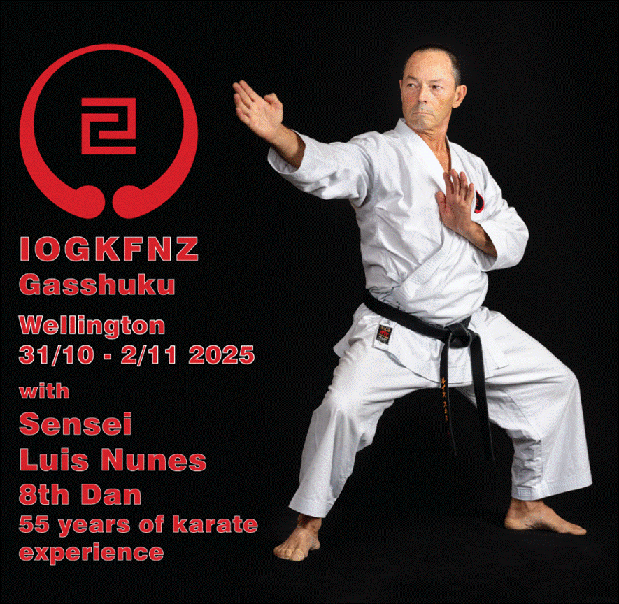 New Zealand Gasshuku New Zealand Gasshuku Sensei Luis Nunes – 8th Dan – IOGKF Advisor October 31 – November 2, 2025 + Add to Google Calendar + iCal / Outlook export 00 days 00 hours 00 minutes 00 seconds Date Oct 31 2025 - Nov 02 2025 Time All Day Category National Organizer New Zealand Email iogkfnz.secretary@gmail.com Speaker Sensei Luis Nunes 8th Dan, IOGKF España Chief Instructor Sensei Luis Nunes 8th Dan, IOGKF España Chief Instructor Share this event